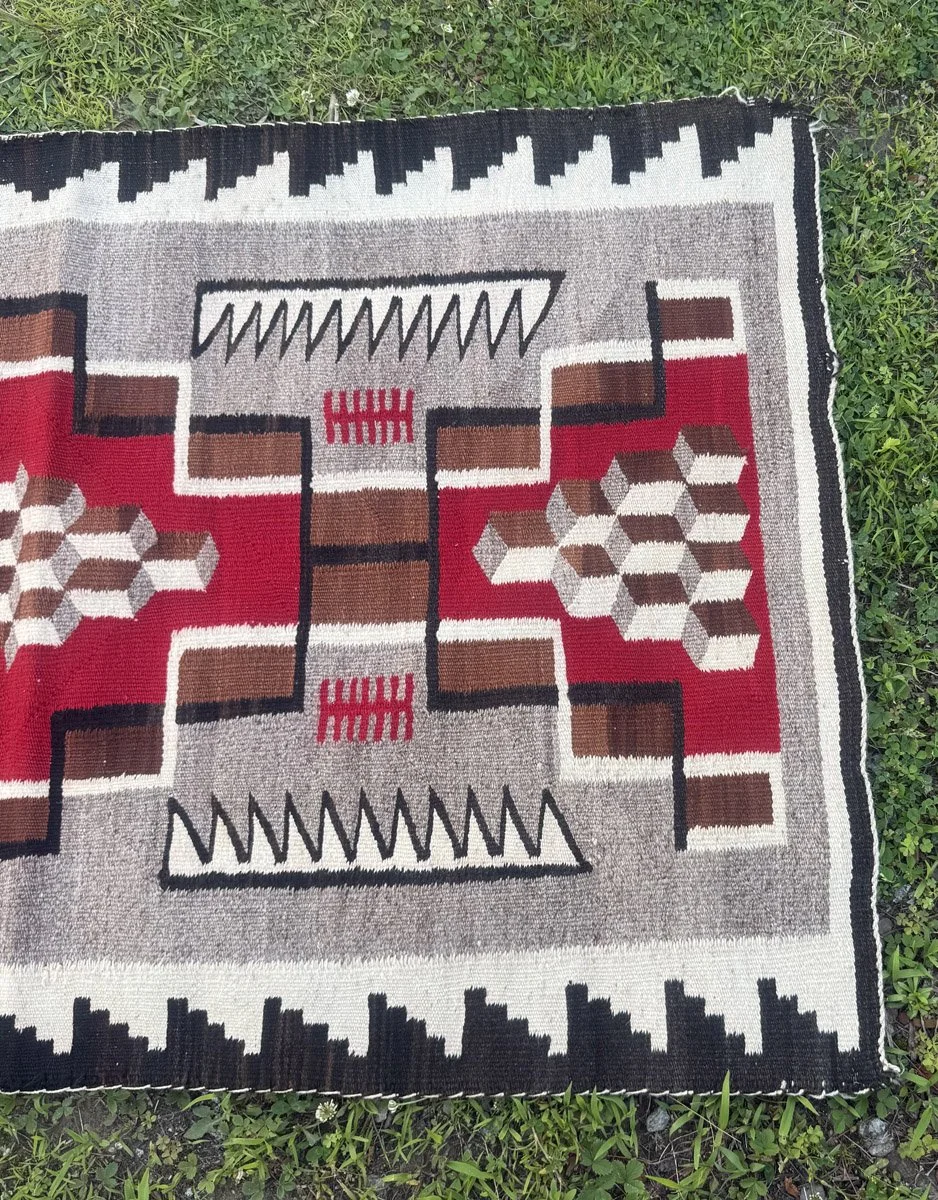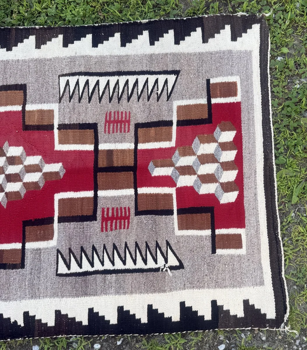 Early American Navajo, Crystal Trading Post, Native American Rug, Reds, Z's - Circa 1920 to 1930